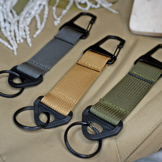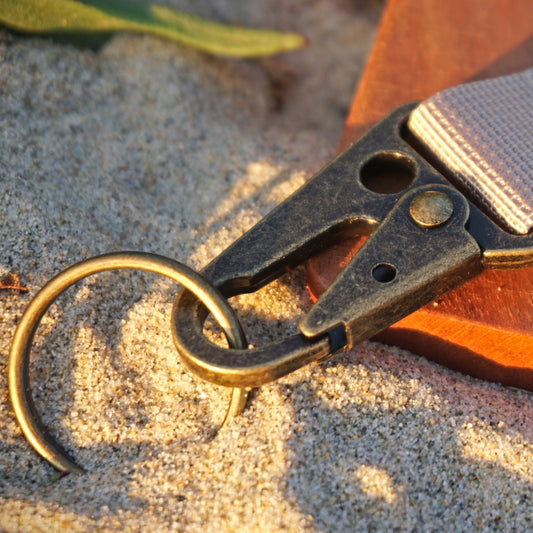 Vintage Heritage Stripes Keychain for Toyota, Tan, Antique Brass Clip