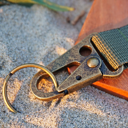 Vintage Heritage Stripes Keychain for Toyota, Green, Antique Brass Clip