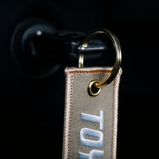 Vintage Tan Retro Stripes Keychain for Toyota, Embroidered